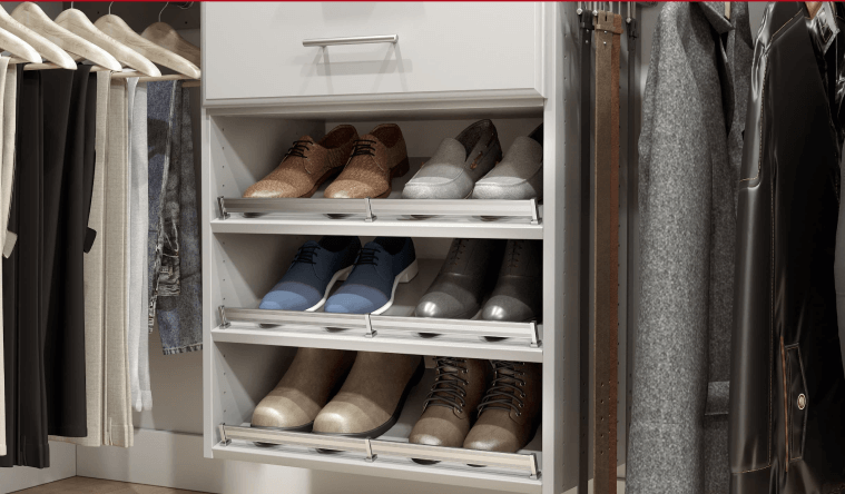 Don’t just store your footwear, show it off! We can add any number of shoe racks to a space so that everything has a place off the floor.